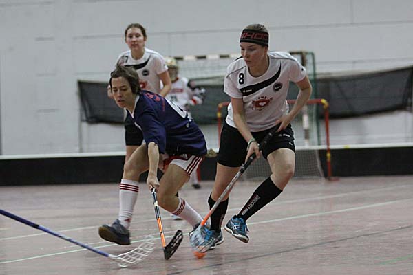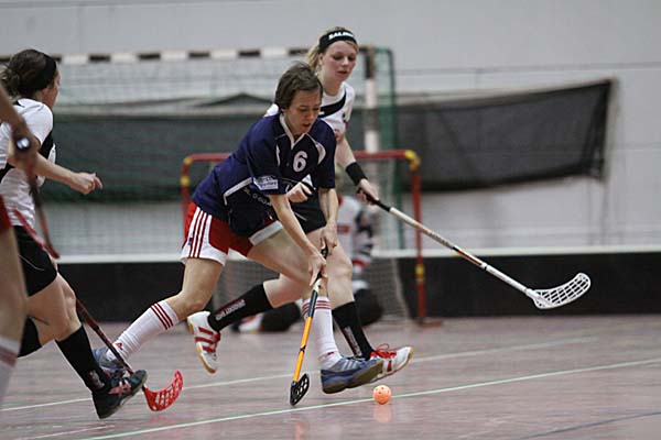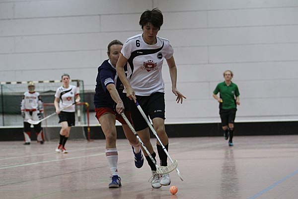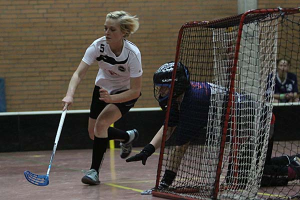 Verlängerung nicht wirklich verankert war. Diese schloss letztlich der ASV siegreich ab: nach vier Minuten bediente Anna Schulte-Herbrüggen Diercks, die mit ihrem zweiten Treffer für einen aus Sicht der Floorball Queens versöhnlichen Abschluss