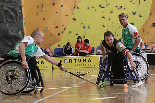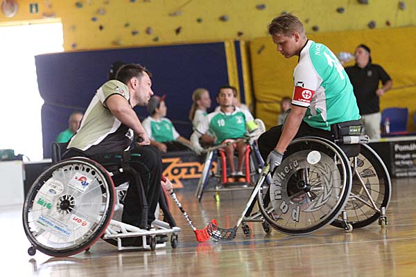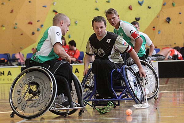 Die Zuschauer erlebten doch zwei sehr unterschiedliche Halbfinals: in der Partie zwischen den Schweden von Nacka HI und FBC United aus Budweis (CZE) gab es viele Zweikämpfe, die Offensivreihen konnten sich in einem schnellen Spiel auszeichnen und sorgten für eine kurzweilige Partie. Am Ende gewannen die Schweden verdient mit 4:2 und profitierten dabei vor allem davon, dass sie in völliger Dominanz bis zur zweiten Drittelpause mit 3:0 führten. Das rein niederländische Semifinal zwischen De Watergeuzen und Doing SV Zoetermeer hingegen sah 45 Minuten lang defensives Rollstuhl-Floorball, was dadurch doch eher weniger Attraktivität für den neutralen, nicht so bewanderten Zuschauer hatte. Auch dass in der gesamten regulären Zeit kein Tor gefallen - erst im Penaltyschießen, welches noch eine weitere deutliche Verzögerung in den Turnierplan brachte, konnte sich dann De Watergeuzen ins Finale schaukeln. ![]() ![]() ![]() ![]() ![]() ![]() ![]() ![]() ![]() ![]() ![]() ![]() ![]() ![]() ![]() ![]() ![]() |