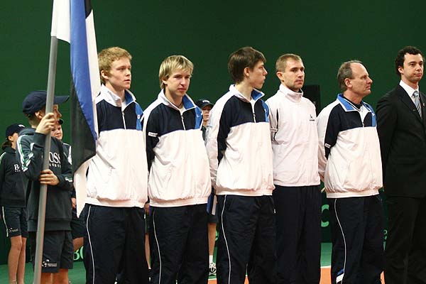 Nach der traditionellen Eröffnungsfeier (die mal wieder wie alle Moderationen praktisch ausschließlich in Estnisch gehalten wurde...) stand am zweiten Tag der Daviscupbegegnung Estland-Slowenien traditionell das Doppel