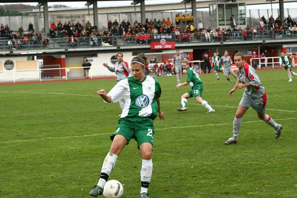 noch aussichtsreich scheiterte, konnte sie in der 70. Minute ihre Leistung nach einem Freistoß mit einem Tor krönen. Zwar war Wolfsburg in Folge durchaus bemüht, aber während Neuenahr noch eine Reihe von Chancen hatte und den