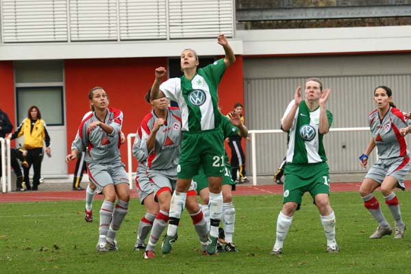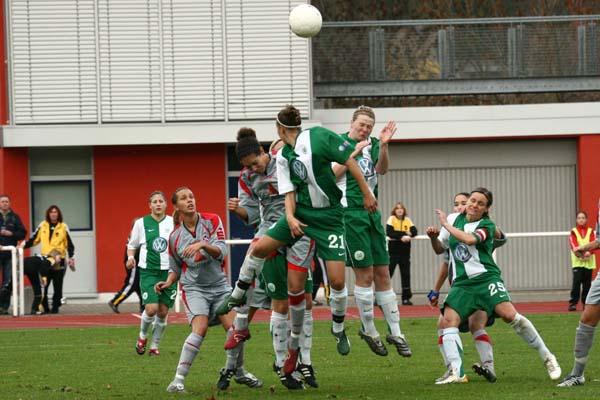Die ansonsten nervös wirkende Nathalie Bock leitete in der 51. Minute mit einem Traumpass auf Wolfsburgs beste Spielerin, Martina Müller, einen Angriff über die rechte Seite ein, die Flanke landete schließlich bei Annelie