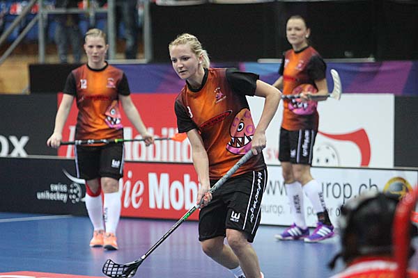 blau-gelben Damen noch torfreudig abklatschten, klatschte der Ball bereits wieder in ihrem Tor, Seraina Ulber sorgte nach nur sieben Sekunden praktisch vom Bullypunkt mit einer schönen Einzelleistung